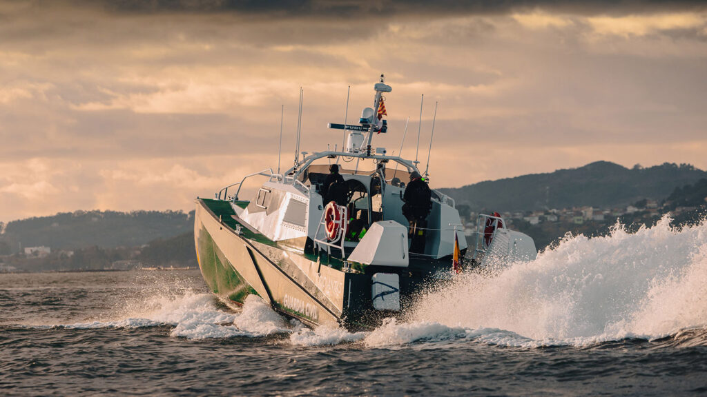 - Eslora de 18 metros, casco de aluminio de alta resistencia y diseño optimizado para misiones de seguridad marítima.
